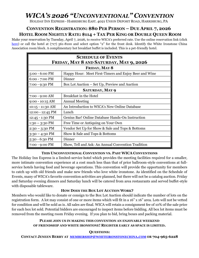 Join Fellow White Ironstone China Association Members for Our 2026 "Unconventional" Convention